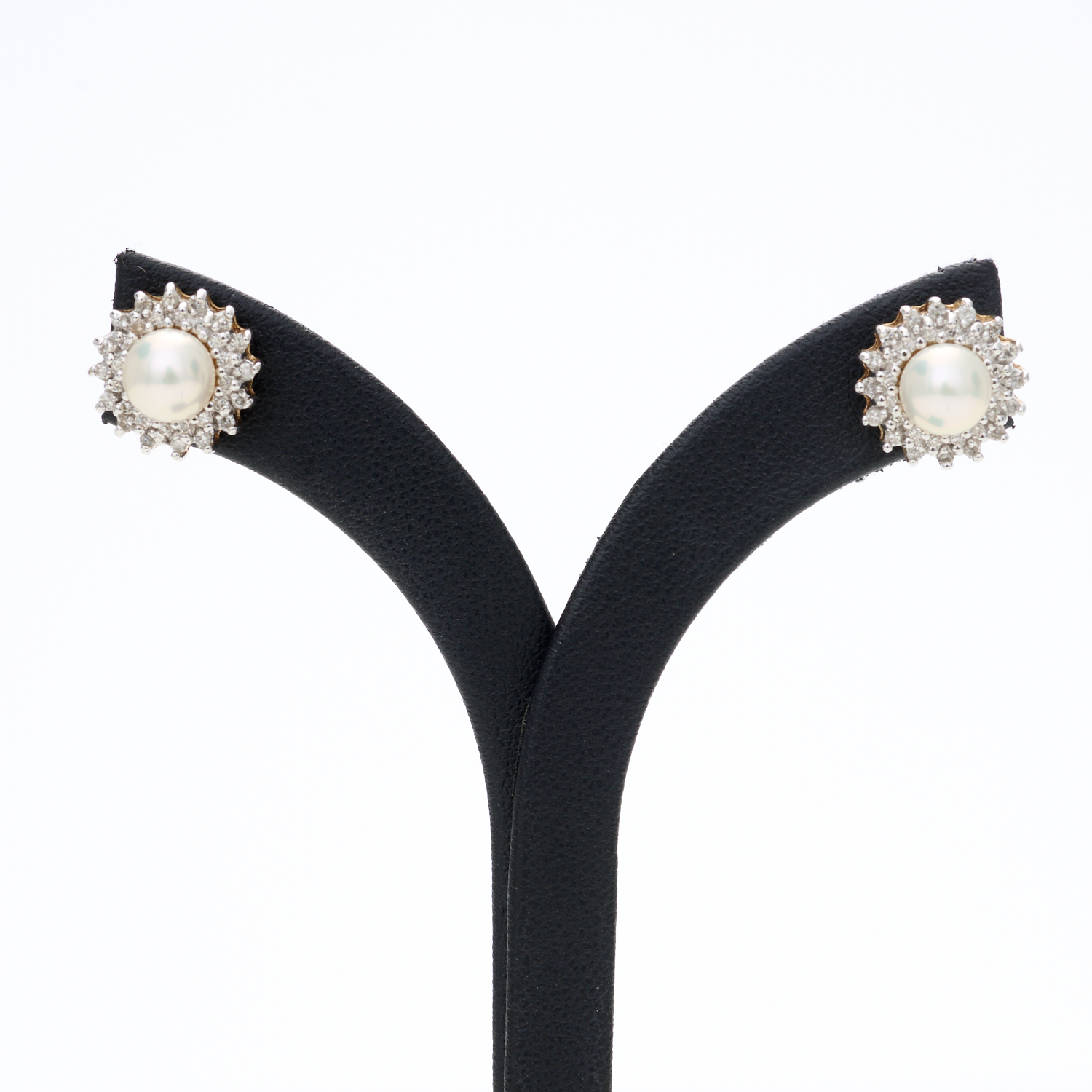 A PAIR OF CULTURED PEARL AND DIAMOND SET EARRINGS IN 9CT GOLD