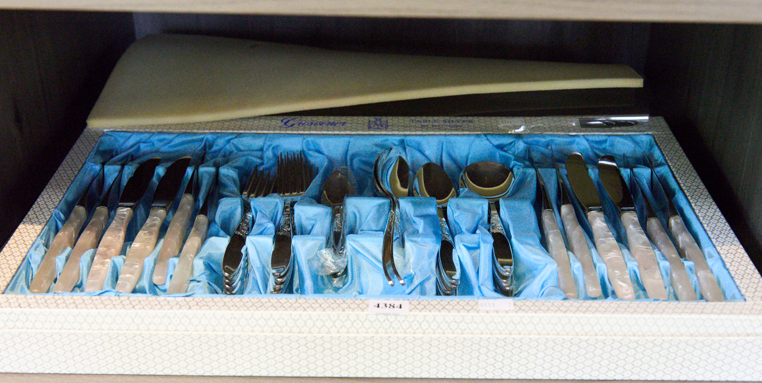 A 44 PIECE SILVER PLATED FLATWARE SERVICE WITH PEARL HANDLES, LEONARD JOEL LOCAL DELIVERY SIZE: MEDIUM
