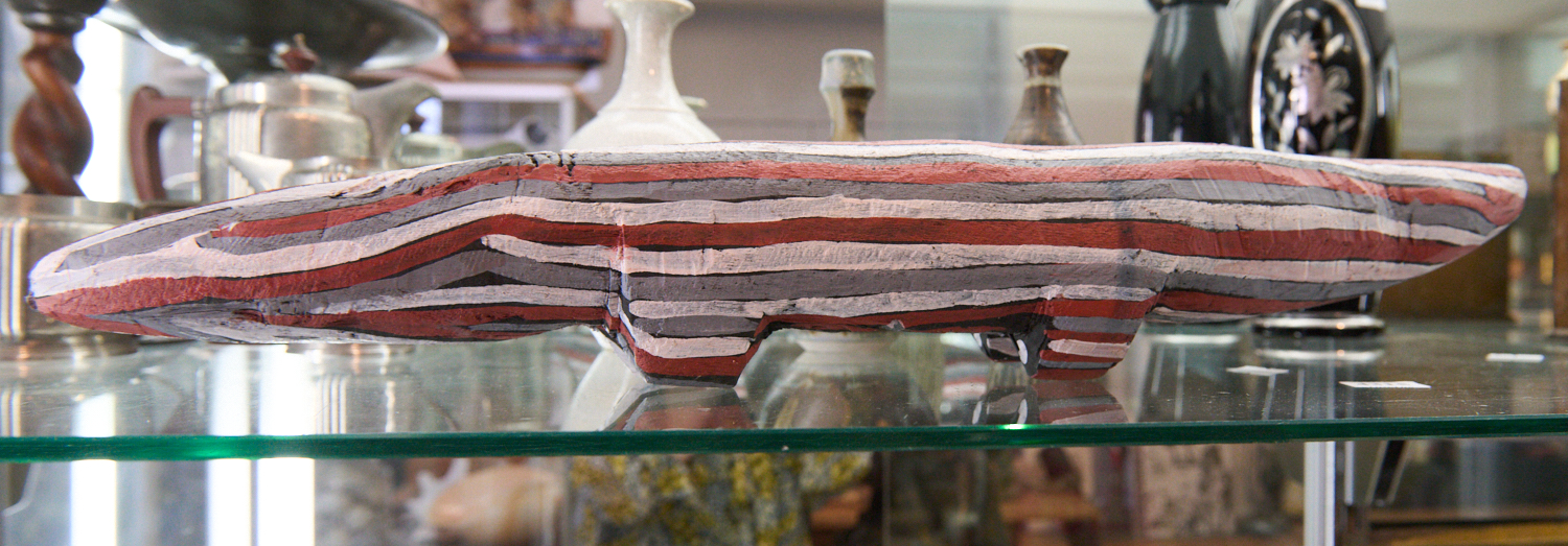 AN AUSTRALIAN CARVED ANIMAL WITH ABORIGINAL PAINTED DECORATION W.53CM, LEONARD JOEL LOCAL DELIVERY SIZE: SMALL