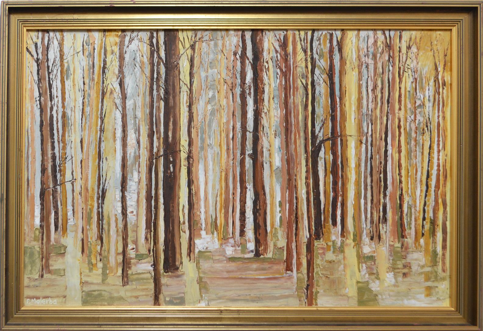 SIGNED F. MALERBA, UNTITLED (TREES), OIL ON BOARD, 59 X 90CM