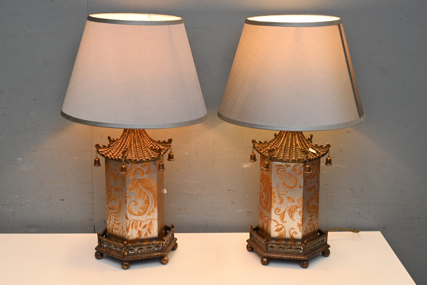 A PAIR OF CHINOISERIE TABLE LAMPS WITH GOLD LEAF DETAILING) (70H CM) (LEONARD JOEL DELIVERY SIZE: LARGE)