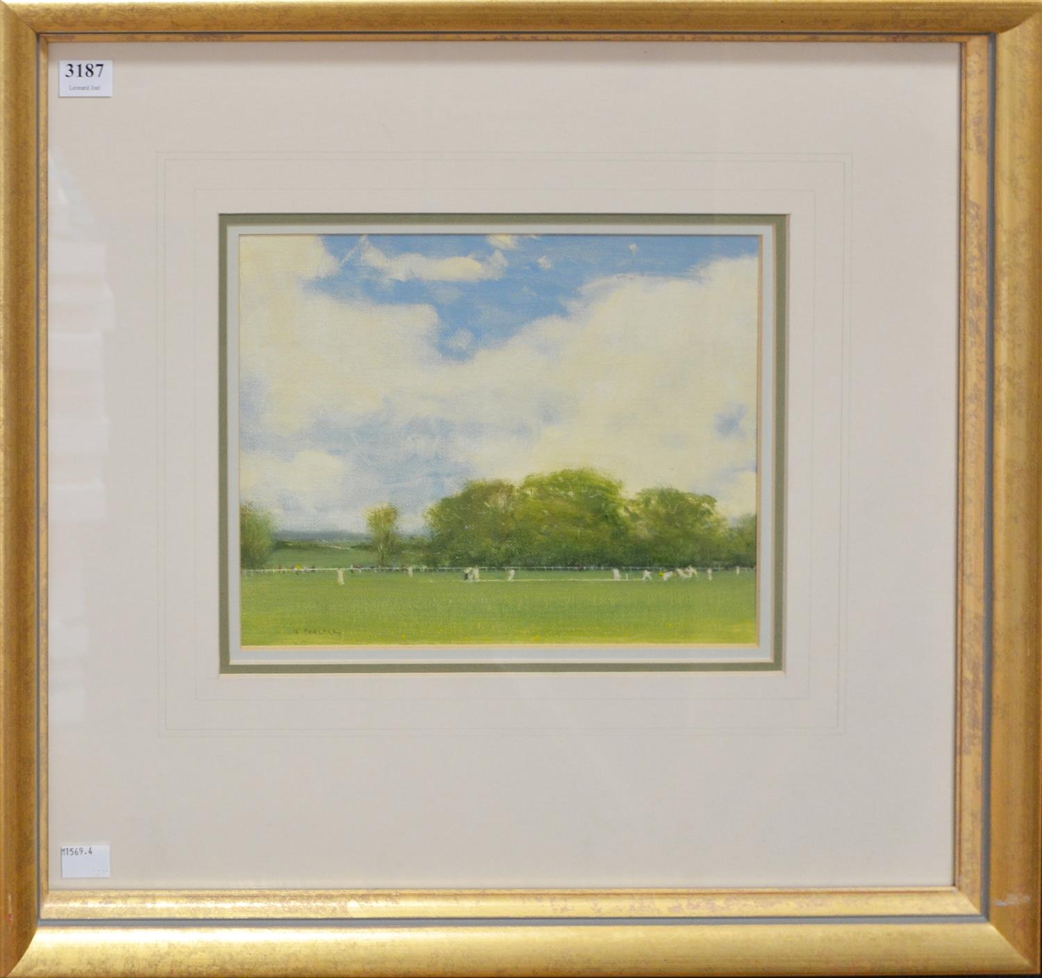 JOHN MCQUALTER, THE DIVING CATCH 1998, OIL ON BOARD, 19 X 24CM