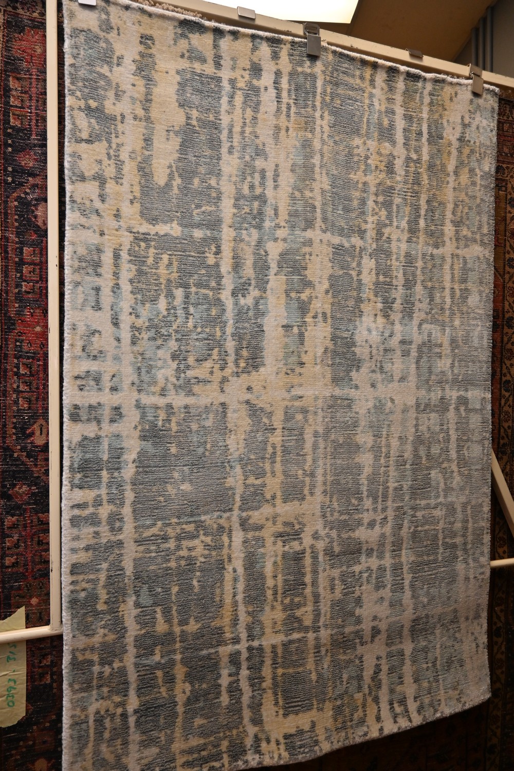 A BRAND-NEW MODERN SILKY TEXTURE DESIGNER EVEREST CARPET. HAND LOOMED IN SHADES OF GREY AND CANARY YELLOW. SIZE: 151 X 100CM ORIGIN: INDIA - RRP: $650