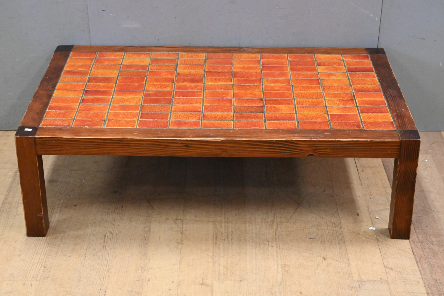 A TIMBER COFFEE TABLE WITH ORANGE TILED INSET (38H x 125W x 71D CM) (LEONARD JOEL DELIVERY SIZE: LARGE)