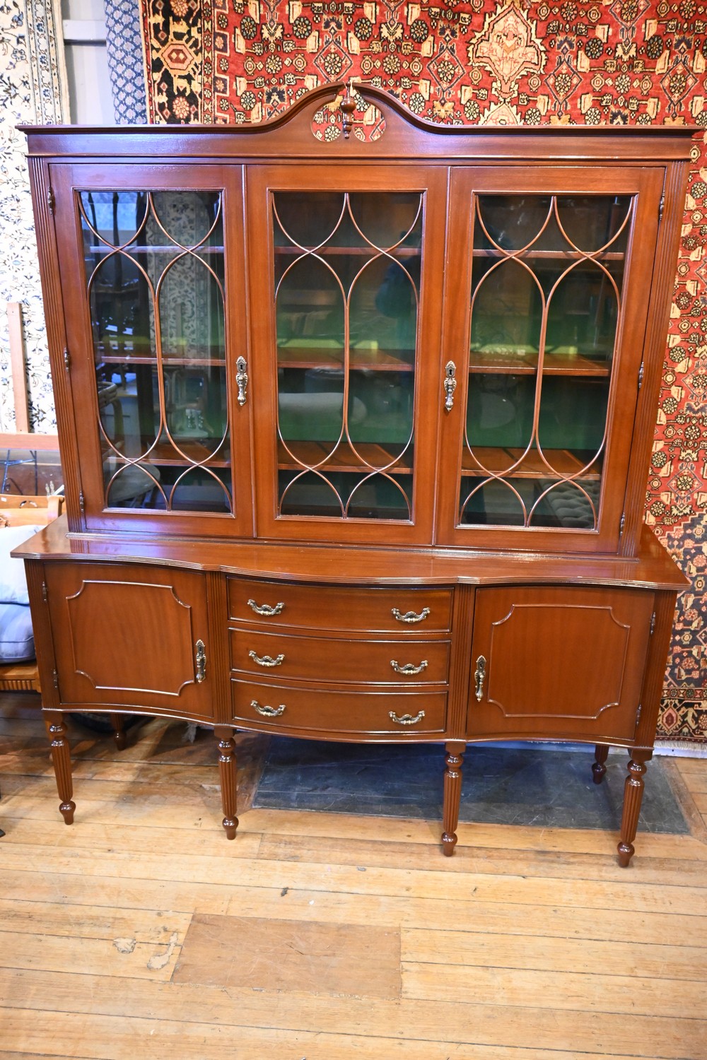 A SUBSTANTIAL GLASS FRONTED DOUBLE BODIED DISPLAY CABINET (207H x 178W x 50D CM) (PLEASE NOTE THIS HEAVY ITEM MUST BE REMOVED BY CARRIERS AT THE CUSTOMER'S EXPENSE. LEONARD JOEL STAFF CANNOT ASSIST CARRYING THIS ITEM) (X-LARGE ITEM)