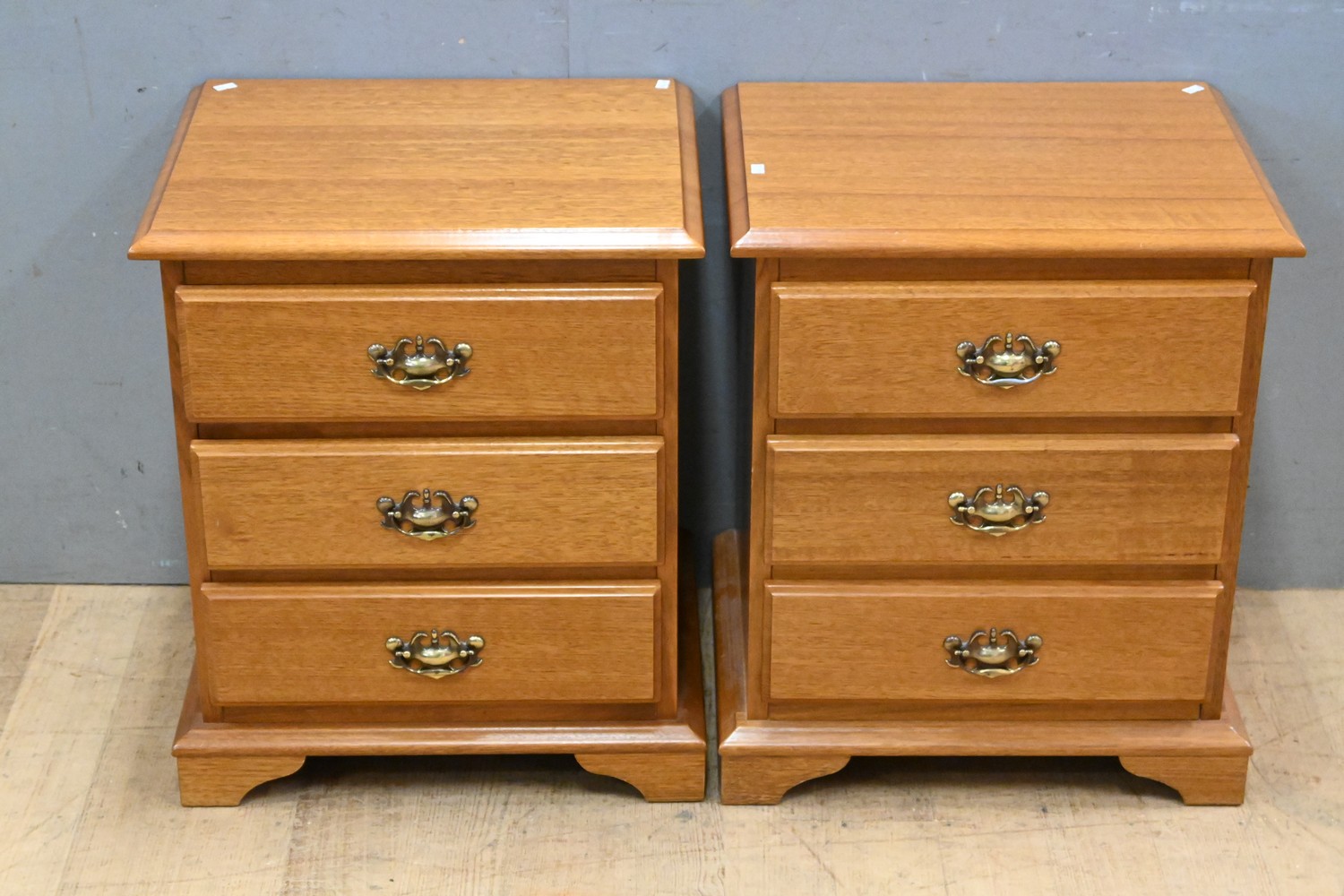 A PAIR OF THREE DRAWER BEDSIDES (62H x 52W x 41D CM) (LEONARD JOEL DELIVERY SIZE: LARGE)