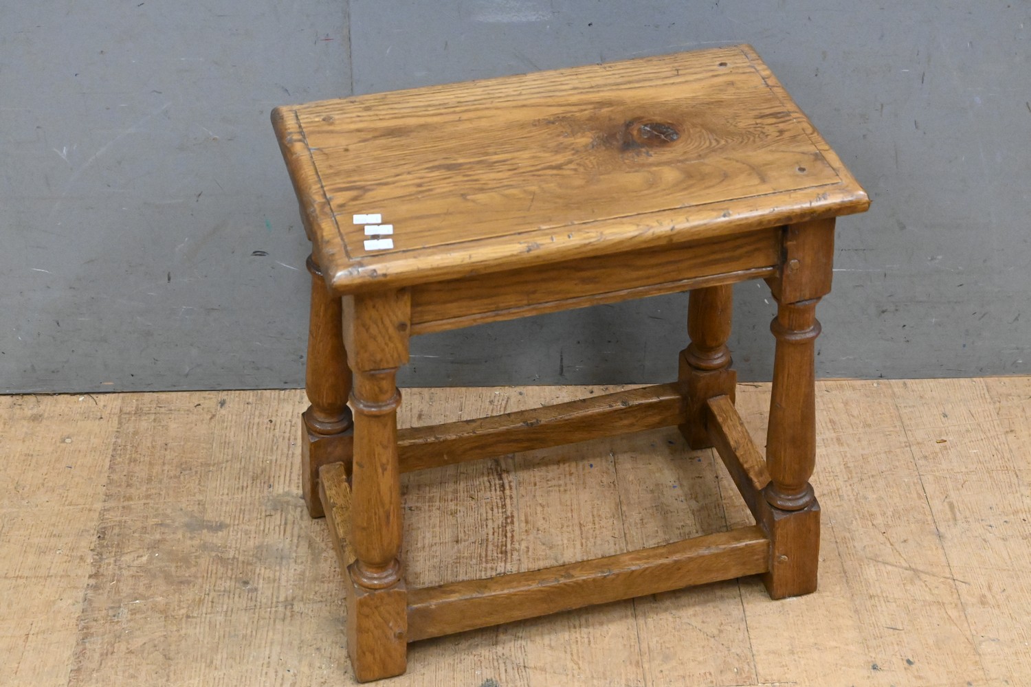 AN OAK TURNED JOINT STOOL (47H x 48W x 29D CM) (LEONARD JOEL DELIVERY SIZE: MEDIUM)