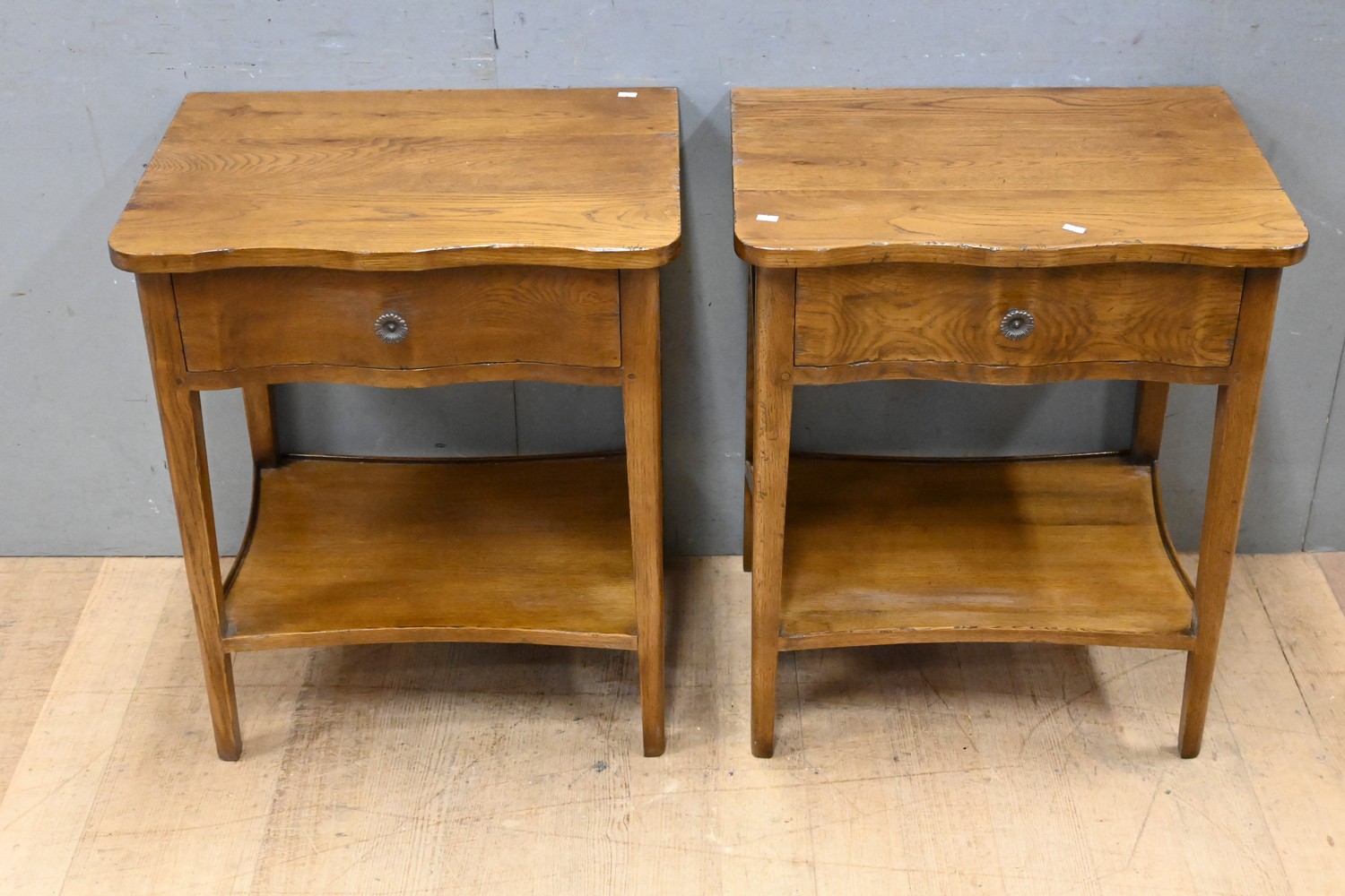 A PAIR OF OAK FRENCH STYLE BEDSIDE TABLES (70H x 60W x 46D CM) (LEONARD JOEL DELIVERY SIZE: LARGE)
