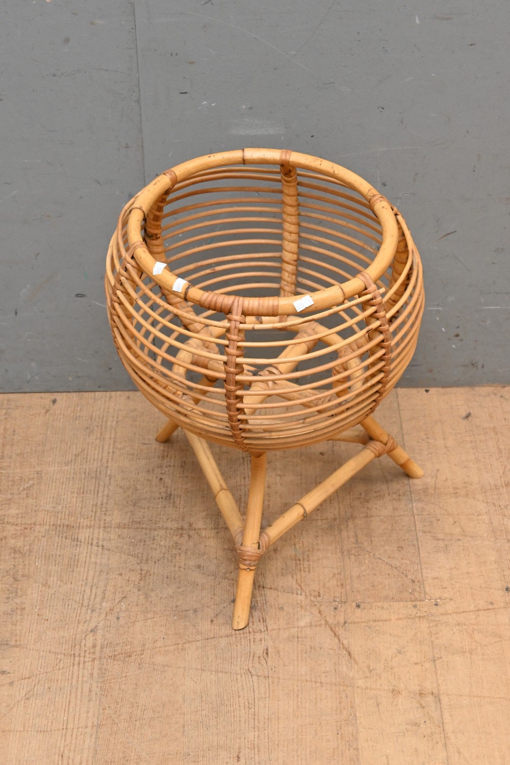 A CANE PLANT STAND (48H x 43D CM) (LEONARD JOEL DELIVERY SIZE: MEDIUM)