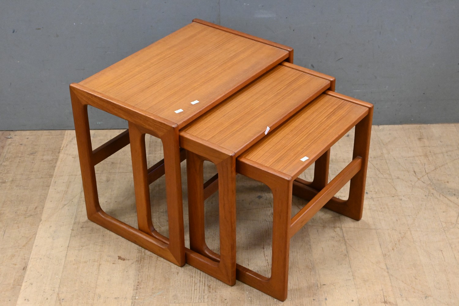 A NEST OF TEAK TABLES (50H x 58W x 40D CM) (LEONARD JOEL DELIVERY SIZE: LARGE)