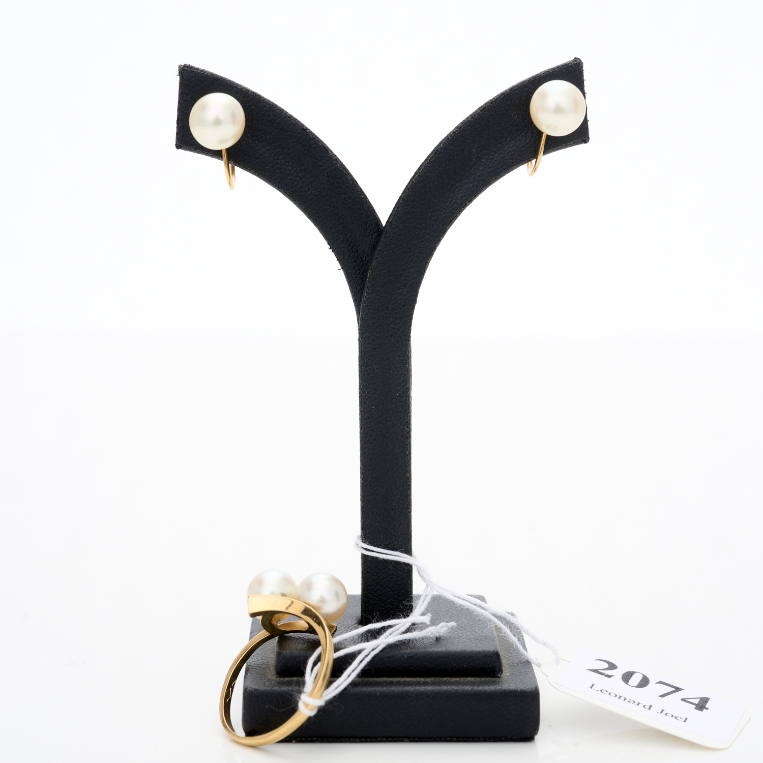 PEARL CROSSOVER RING IN 18CT GOLD, RING SIZE N, AND PAIR OF PEARL STUDS IN 9CT GOLD, TO SCREW BACK FITTINGS