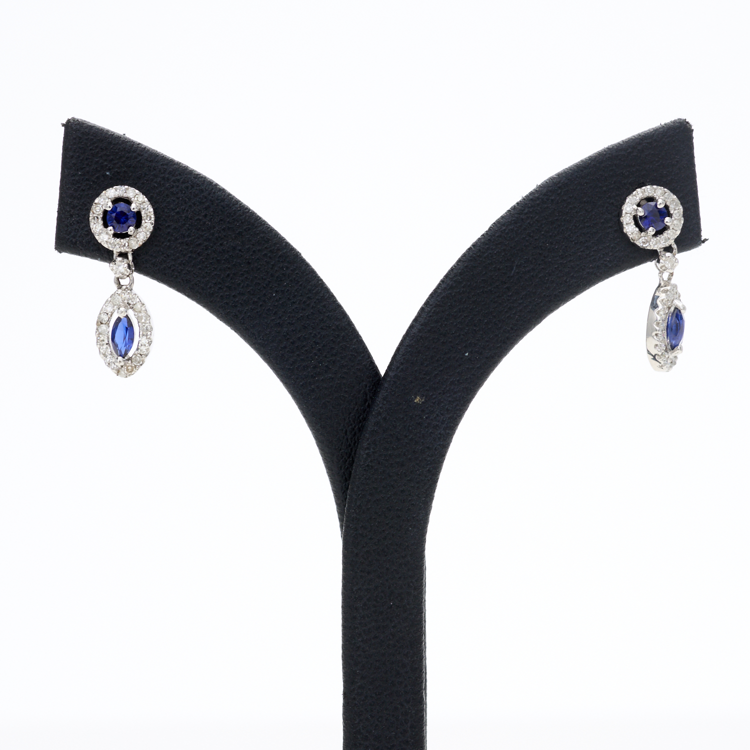 A PAIR OF DIAMOND AND SAPPHIRE STUD EARRINGS IN 9CT WHITE GOLD, TO POST AND BUTTERFLY FITTINGS