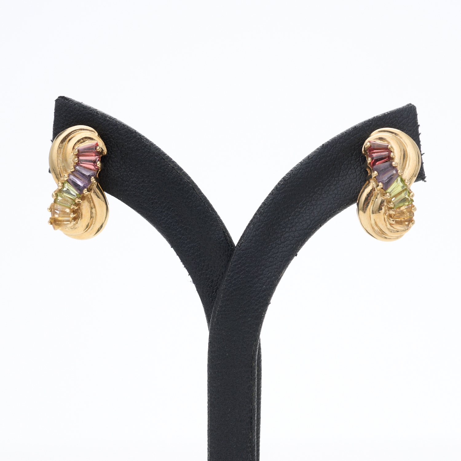 A PAIR OF GEM SET STUD EARRINGS IN 9CT GOLD, TO POST AND BUTTERFLY FITTINGS, 3.3GMS