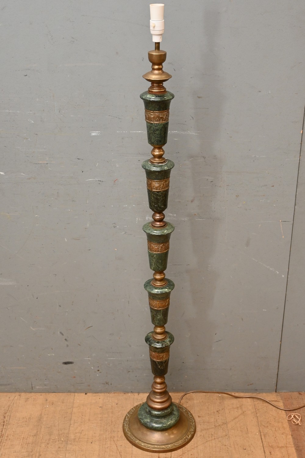 A BRASS AND MARBLE STANDARD LAMP WITH HORSE AND CART DECORATIONS TO BRASS SLEAVES ( 138H CM) (LEONARD JOEL DELIVERY SIZE: LARGE)
