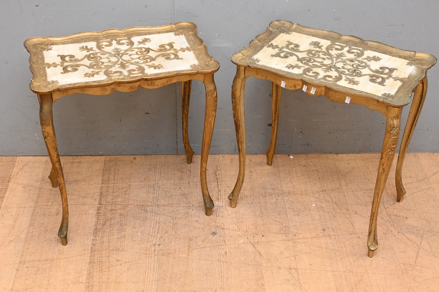 A PAIR OF ITALIAN FLORENTINE RECTANGULAR FORM SIDE TABLES (56H x 56W x 35D CM) (LEONARD JOEL DELIVERY SIZE: MEDIUM)