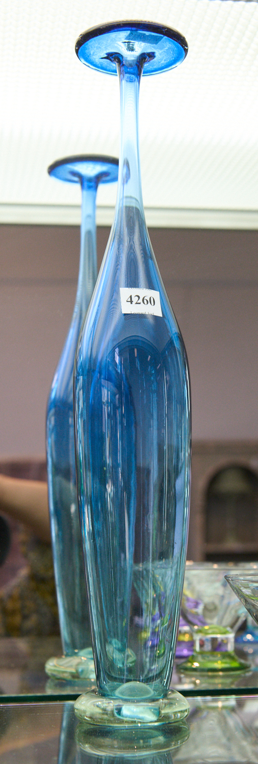 A TALL SLENDER BLUE ART GLASS VASE H.41CM, LEONARD JOEL LOCAL DELIVERY SIZE: MEDIUM