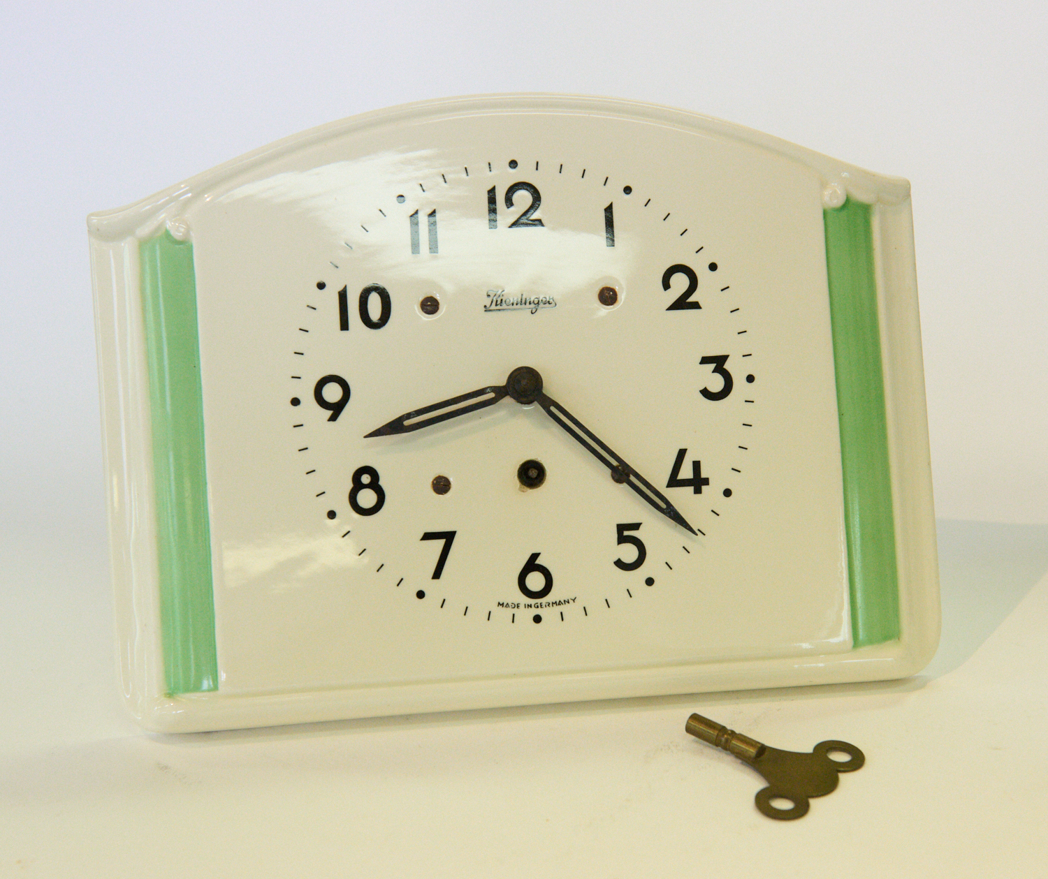 A GERMAN KIENINGER CERAMIC WALL CLOCK WITH KEY W.28.5CM, LEONARD JOEL LOCAL DELIVERY SIZE: SMALL