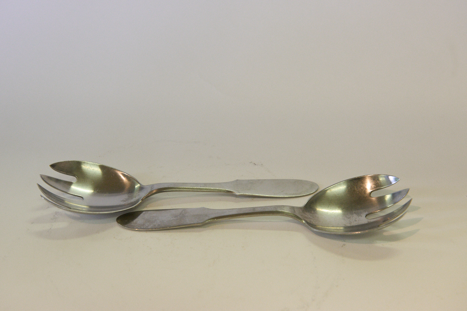 TWO GEORG JENSEN STAINLESS STEEL SALAD SERVERS DESIGNED BY HENNING KOPPELL, LEONARD JOEL LOCAL DELIVERY SIZE: SMALL