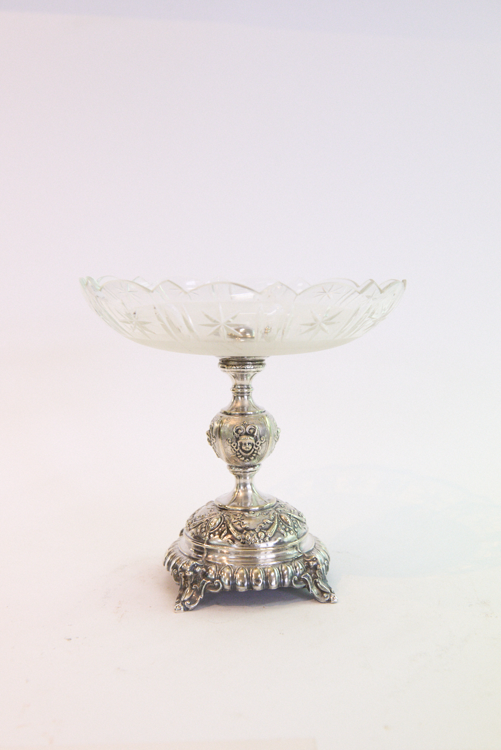 A GERMAN CUT CRYSTAL COMPORT WITH ANIMAL MOTIF FEET H.20.5CM, DIA.21CM, LEONARD JOEL LOCAL DELIVERY SIZE: SMALL