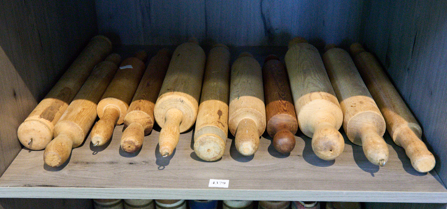 A COLLECTION OF VINTAGE WOODEN PINE ROLLING PINS, LEONARD JOEL LOCAL DELIVERY SIZE: MEDIUM