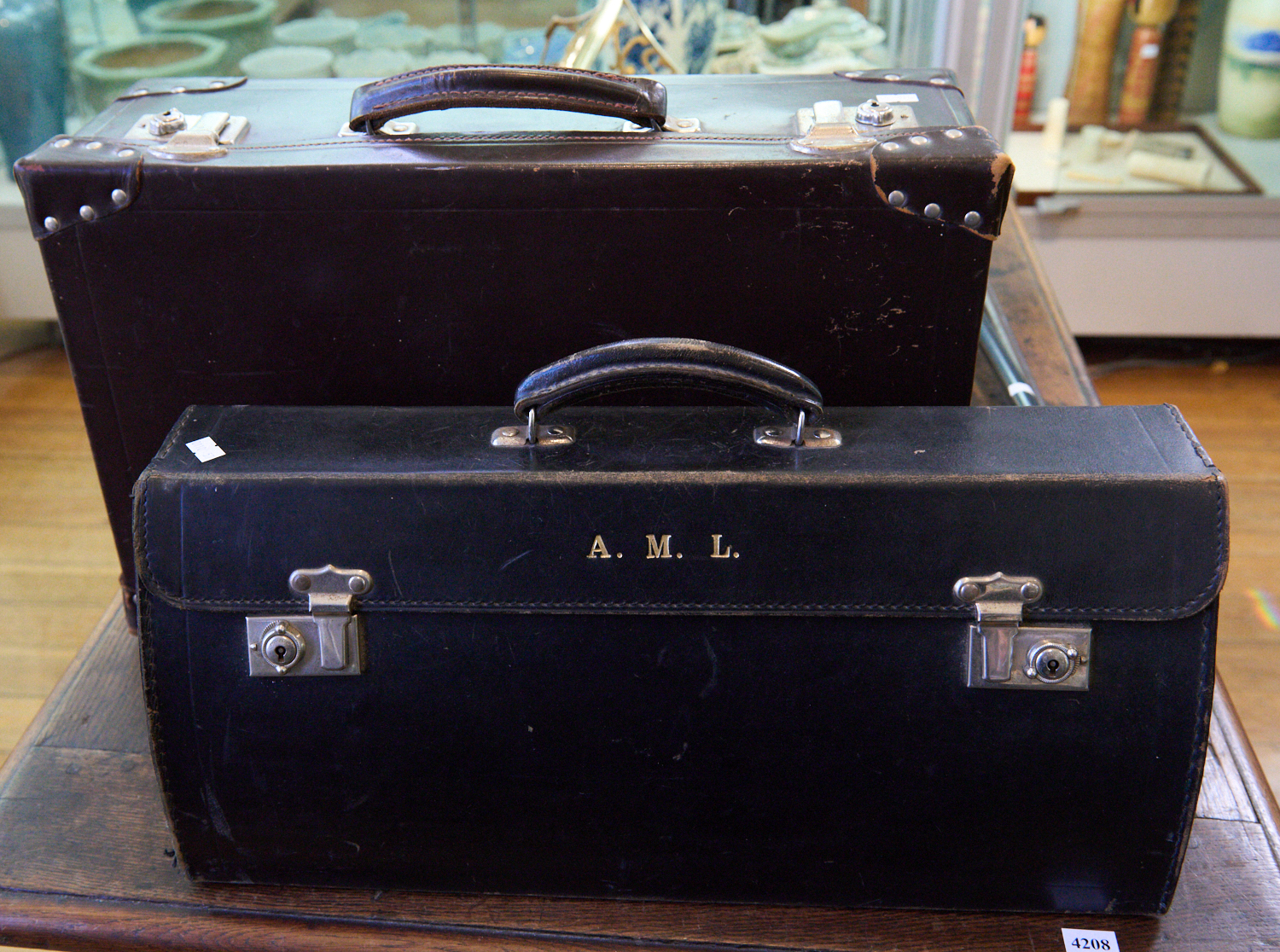 TWO VINTAGE LEATHER CASES W.51CM X H.32CM, LEONARD JOEL LOCAL DELIVERY SIZE: MEDIUM