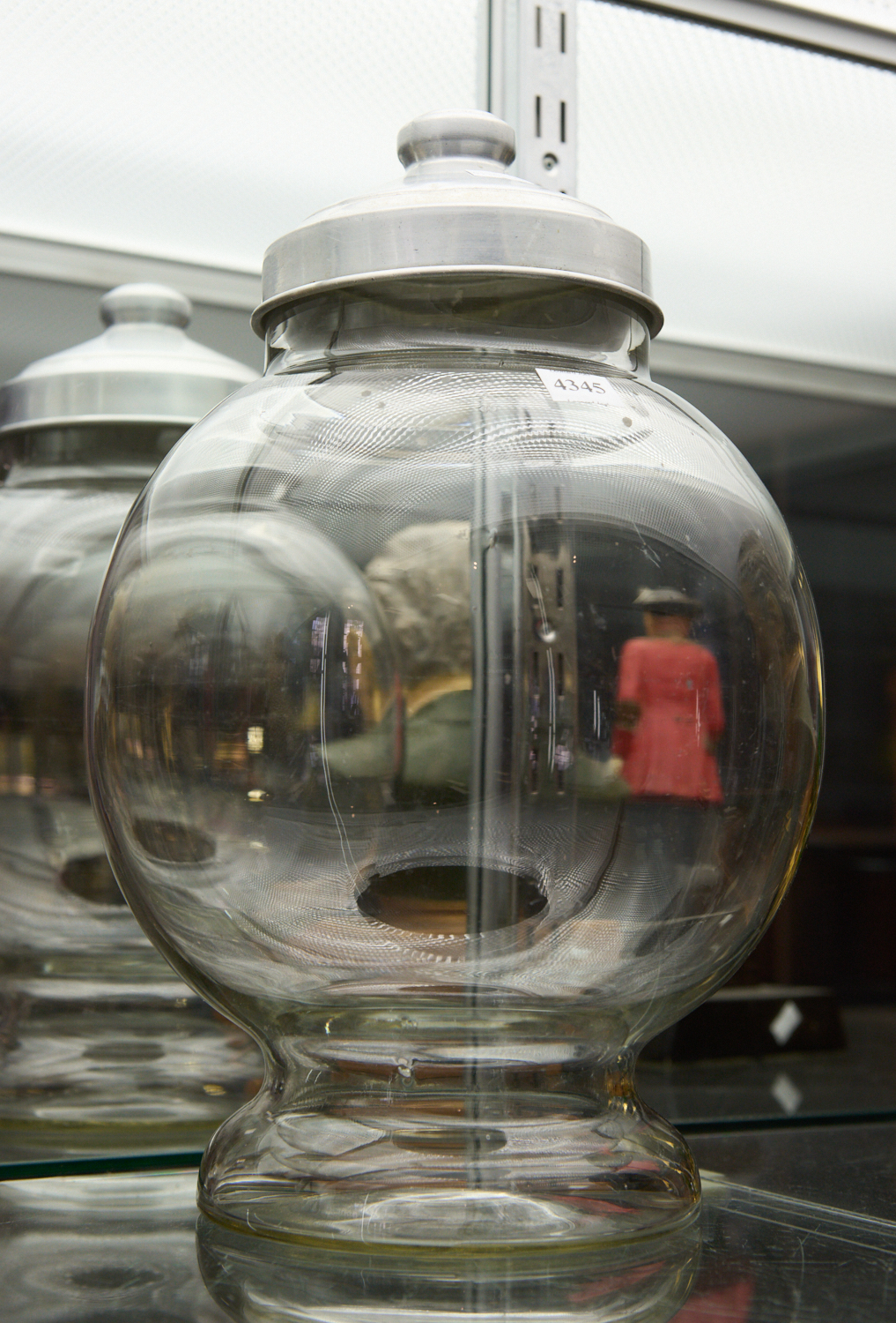 A GLASS AND ALUMINIUM TOPPED LOLLY JAR H.40CM, LEONARD JOEL LOCAL DELIVERY SIZE: MEDIUM