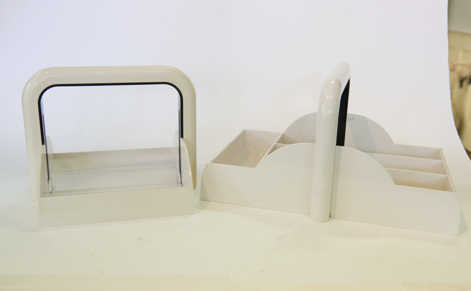 PAIR OF ITALIAN GUZZINI WHITE PLASTIC NAPKIN DISPENSER AND CUTLERY TRAY W.30CM, LEONARD JOEL LOCAL DELIVERY SIZE: SMALL