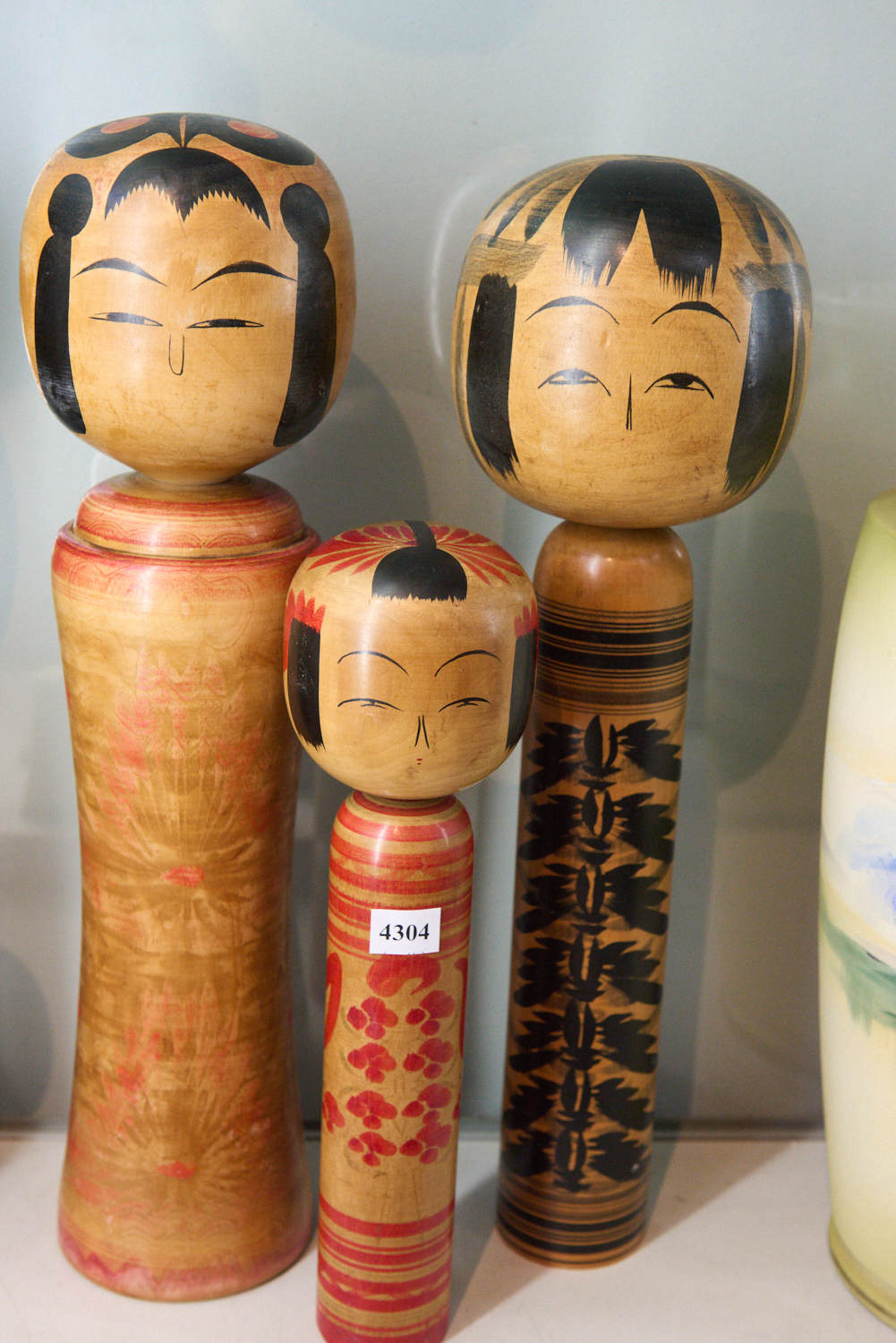 THREE HAND PAINTED JAPANESE WOODEN KOKESHI DOLLS, LEONARD JOEL LOCAL DELIVERY SIZE: SMALL