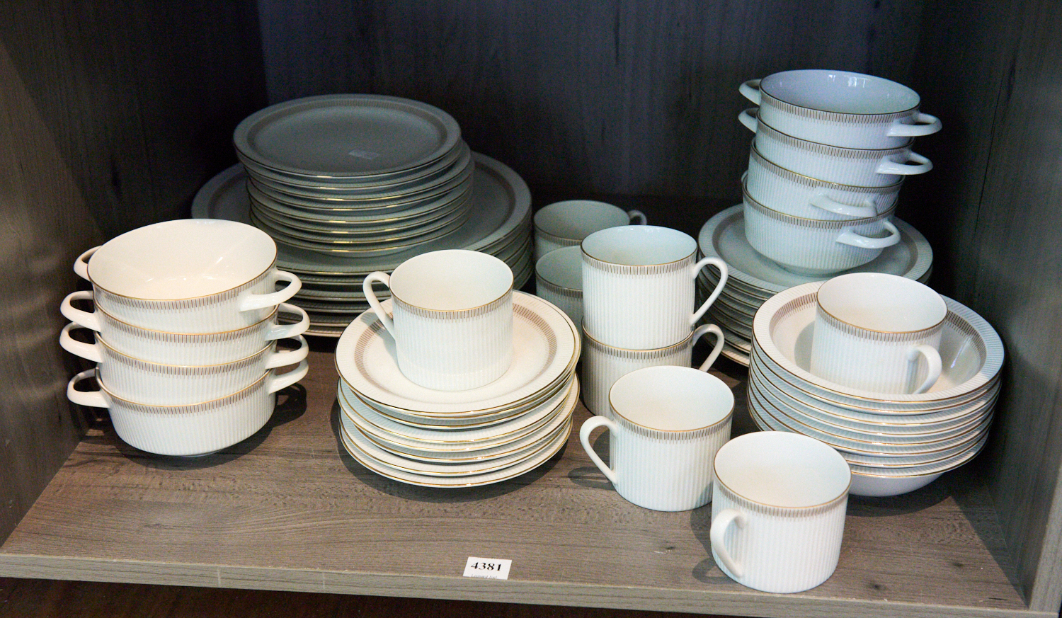 A GERMAN ARZBERG DINNER SET WITH GILT BORDER AND FLUTED SIDES, LEONARD JOEL LOCAL DELIVERY SIZE: MEDIUM