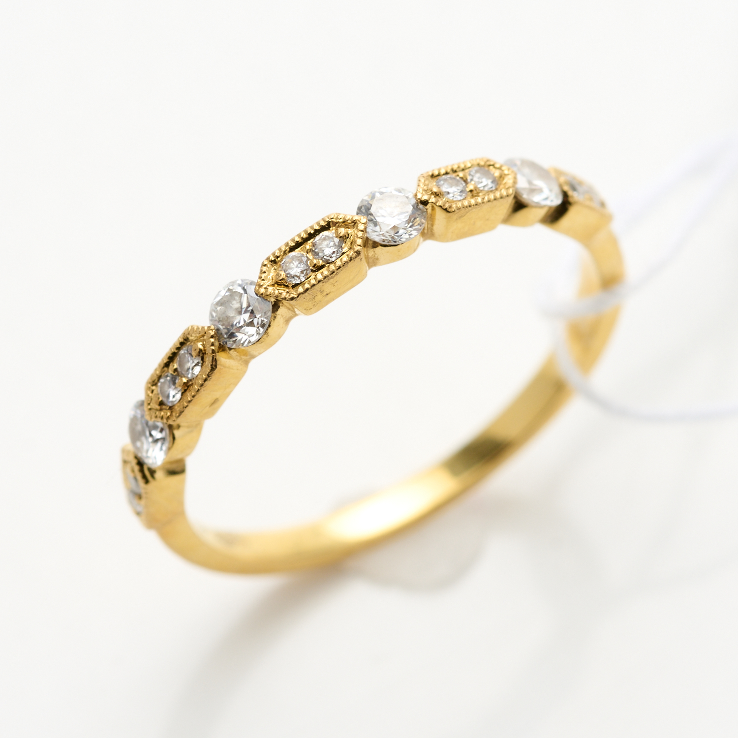A HALF HOOP DIAMOND RING IN 18CT GOLD, RING SIZE M