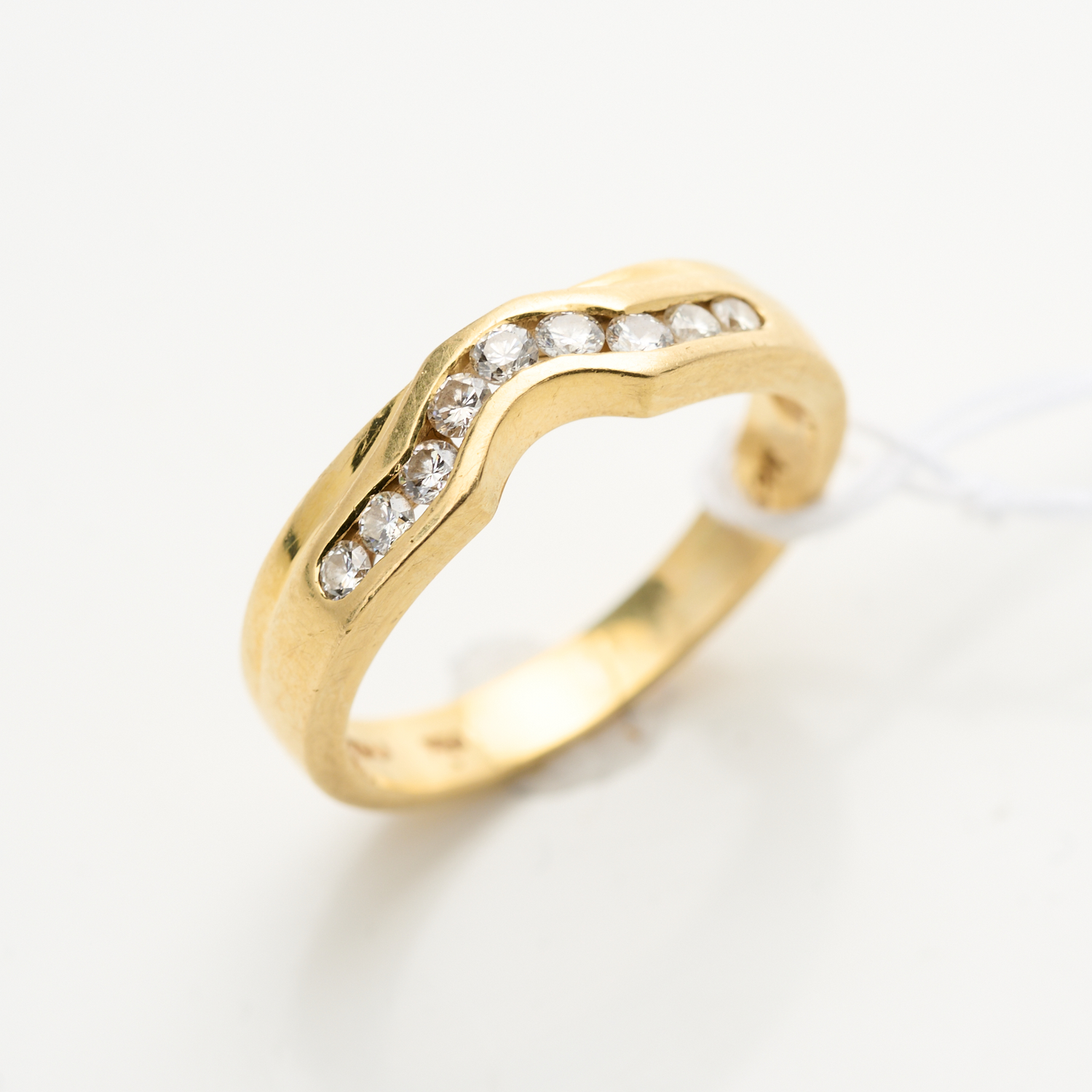 A FITTED DIAMOND BAND IN 18CT GOLD, RING SIZE N, 4.4GMS