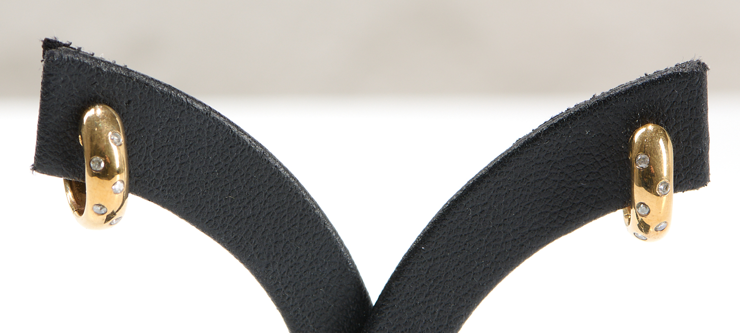 A PAIR OF HAMMER SET DIAMOND EARRINGS IN 9CT GOLD