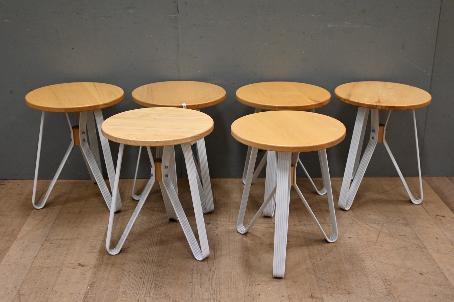 A SET OF SIX LOW STOOLS BY GOLDSWORTHY (A/F) (46H x 38D CM) (LEONARD JOEL DELIVERY SIZE: LARGE)