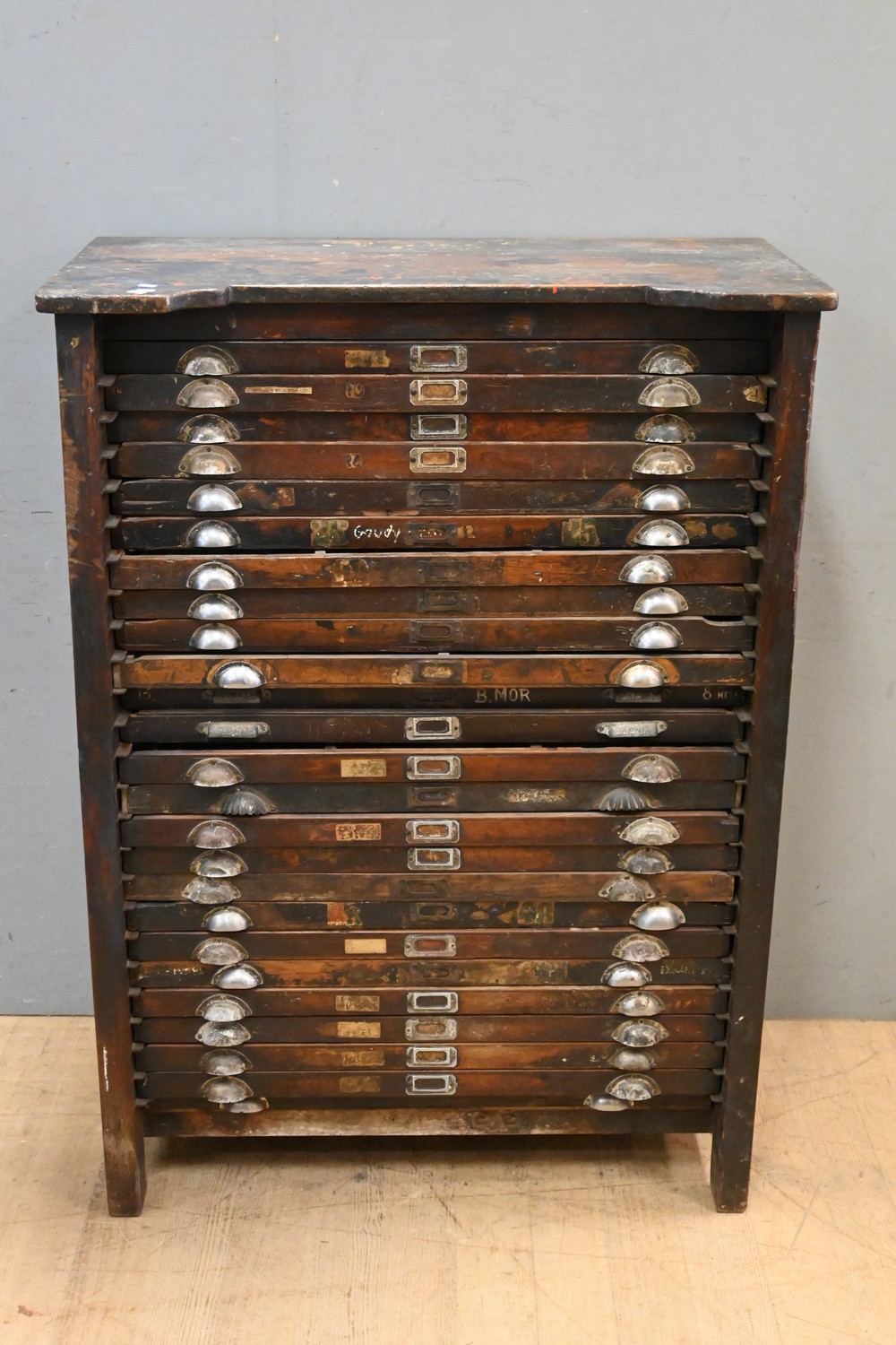 A SUBSTANTIAL RUSTIC INDUSTRIAL SET OF PRINTERS DRAWERS (A/F) (133H x 97W x 53D CM) (PLEASE NOTE THIS HEAVY ITEM MUST BE REMOVED BY CARRIERS AT THE CUSTOMER'S EXPENSE. LEONARD JOEL STAFF CANNOT ASSIST CARRYING THIS ITEM) (X-LARGE ITEM)