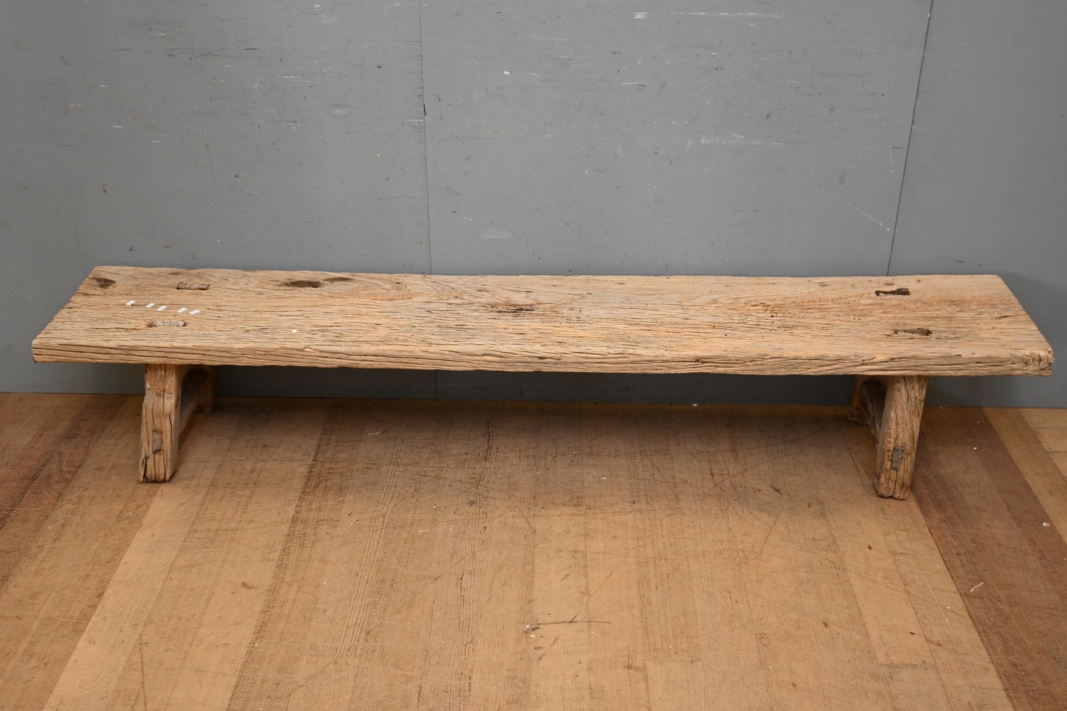 A RUSTIC JAPANESE TIMBER BENCH (A/F) ( 40H X 216W X 40D CM) (LEONARD JOEL DELIVERY SIZE: LARGE)