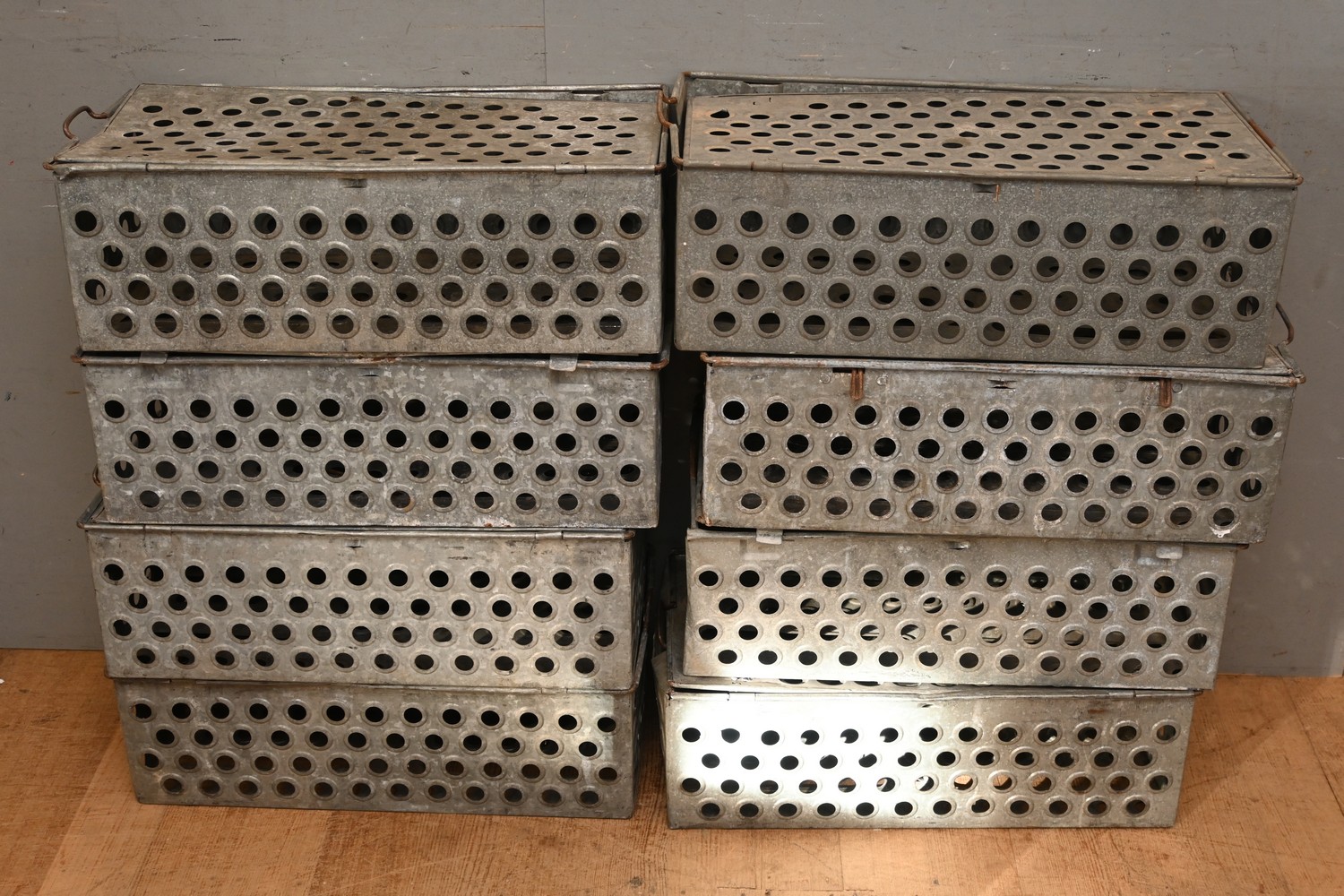 A COLLECTION OF EIGHT METAL BASKETS (A/F) ( 24H X 67W X 34D CM) (LEONARD JOEL DELIVERY SIZE: LARGE)