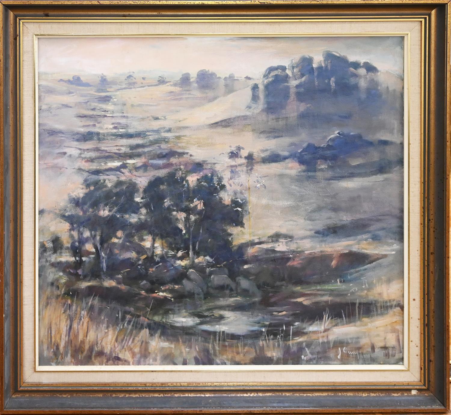 PRO HART, UNTITLED (LANDSCAPE), OIL ON BOARD, 19.5 X 19.5CM CONDITION: OVERALL GOOD CONDITION, WELL FRAMED