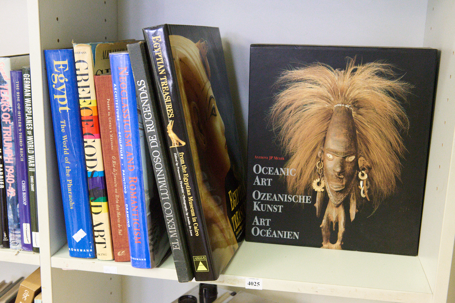 PART SHELF OF BOOKS RELATING TO EGYPT AND OCEANIC ARTEFACTS, LEONARD JOEL LOCAL DELIVERY SIZE: MEDIUM