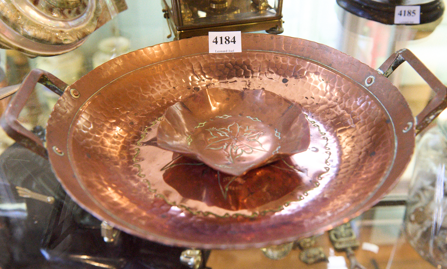 TWO WEEDA TASMANIA HAMMERED COPPER DISHES DIA.22CM, LEONARD JOEL LOCAL DELIVERY SIZE: SMALL
