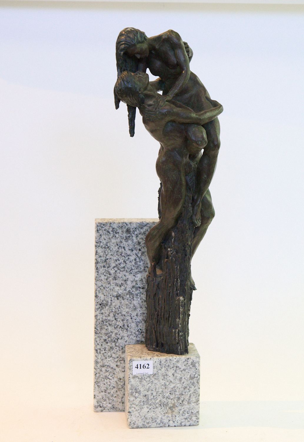 A COMPOSITE FIGURAL STATUE OF TWO LOVERS ON STONE BASE H.50CM, LEONARD JOEL LOCAL DELIVERY SIZE: SMALL