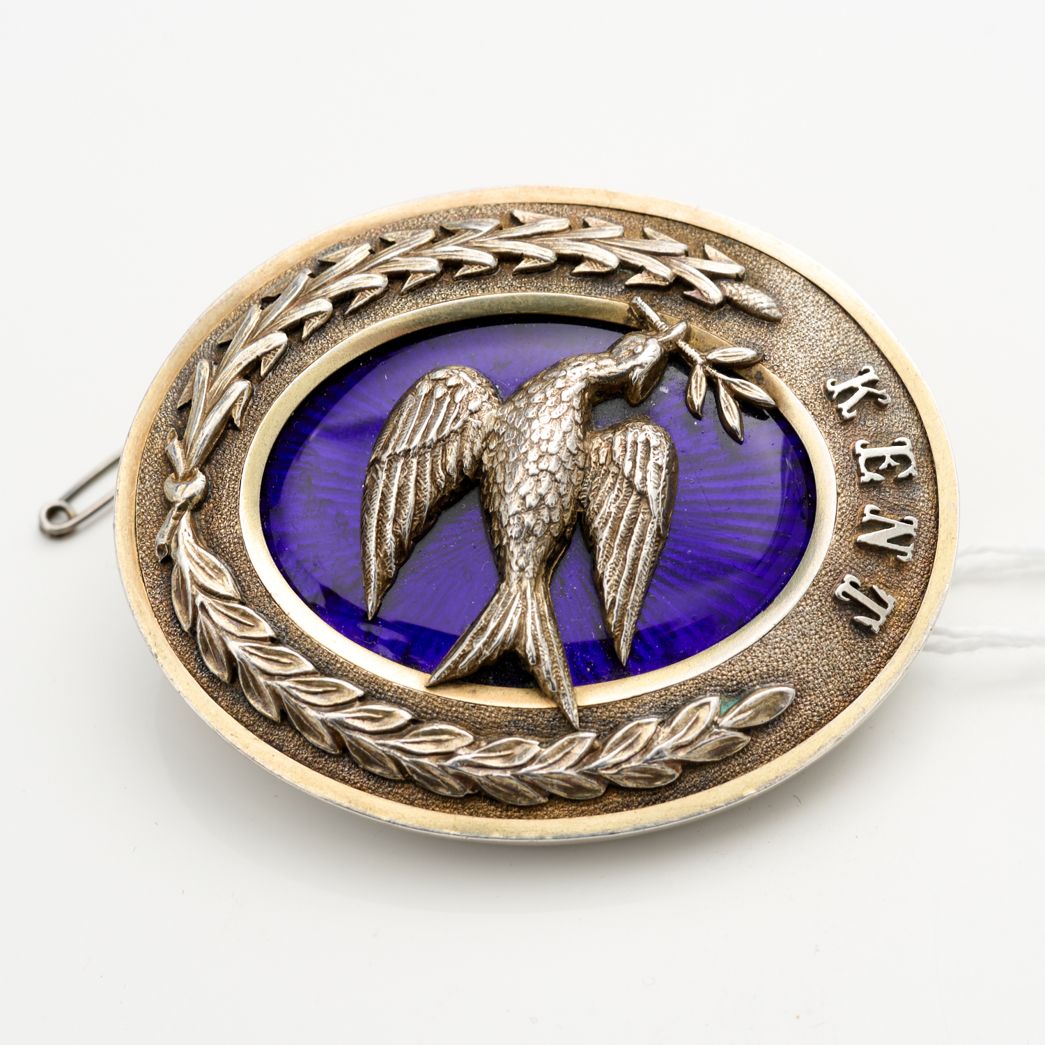A BROOCH IN STERLING SILVER, WITH BRITISH HALLMARKS, APPROXIMATELY 56 X 46MM