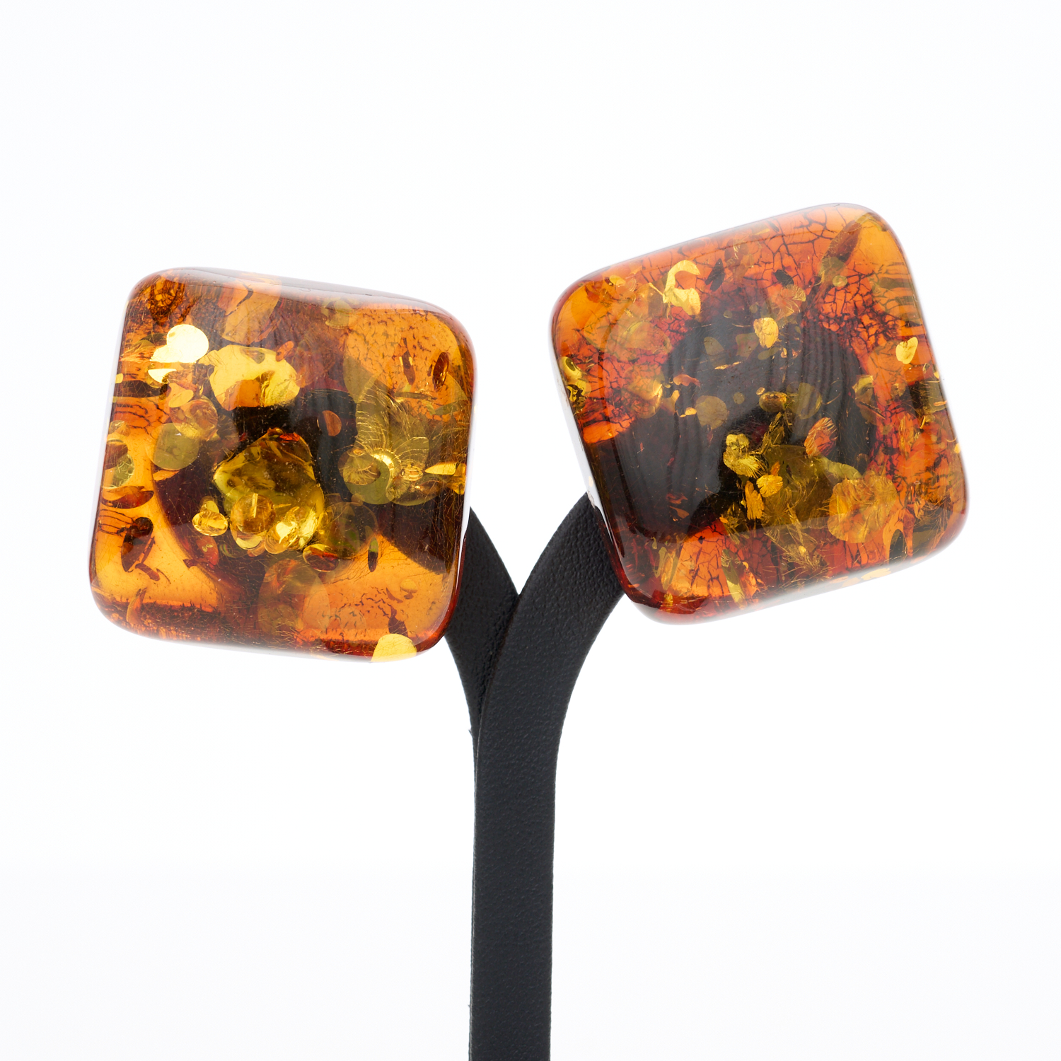 A PAIR OF VINTAGE TREATED AMBER EARRINGS, TO CLIP ON FITTINGS, 34 X 34MM