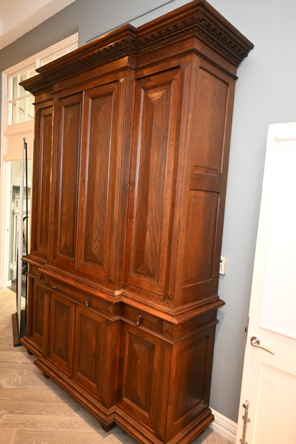 MOST IMPRESSIVE LARGE FRENCH 19TH CENTURY SOLID OAK BLIND BOOKCASE, C.1880'S (A/F) (272H x 202W x 60D CM) (PLEASE NOTE THIS HEAVY ITEM MUST BE REMOVED BY CARRIERS AT THE CUSTOMER'S EXPENSE. LEONARD JOEL STAFF CANNOT ASSIST CARRYING THIS ITEM) (X-LARGE ITEM)