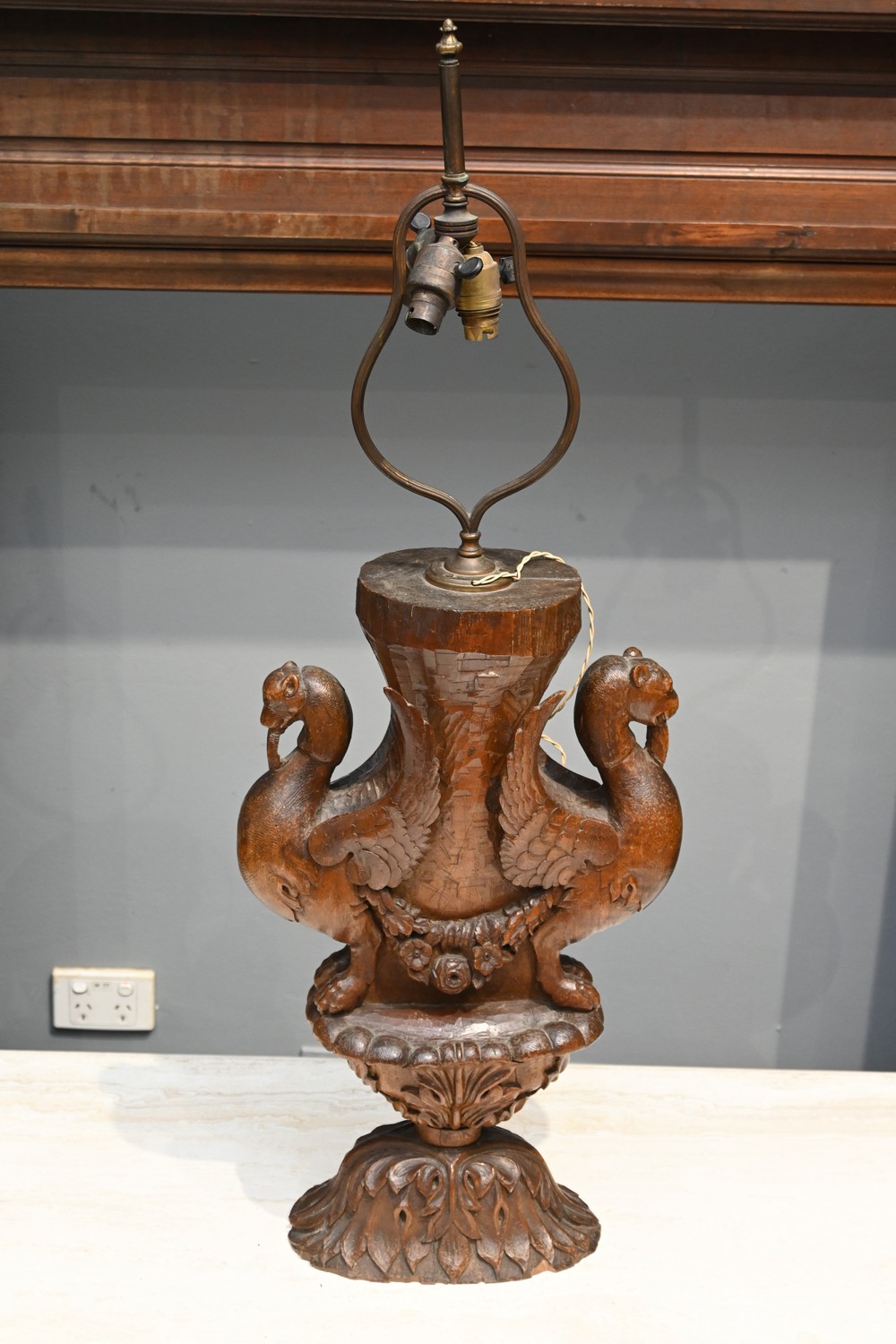 A LATE 18TH CENTURY FRENCH HEAVILLY CARVED TABLE LAMP, EX- ARCHITECTURAL ELEMENT (A/F) (97H CM) (LEONARD JOEL DELIVERY SIZE: Large)