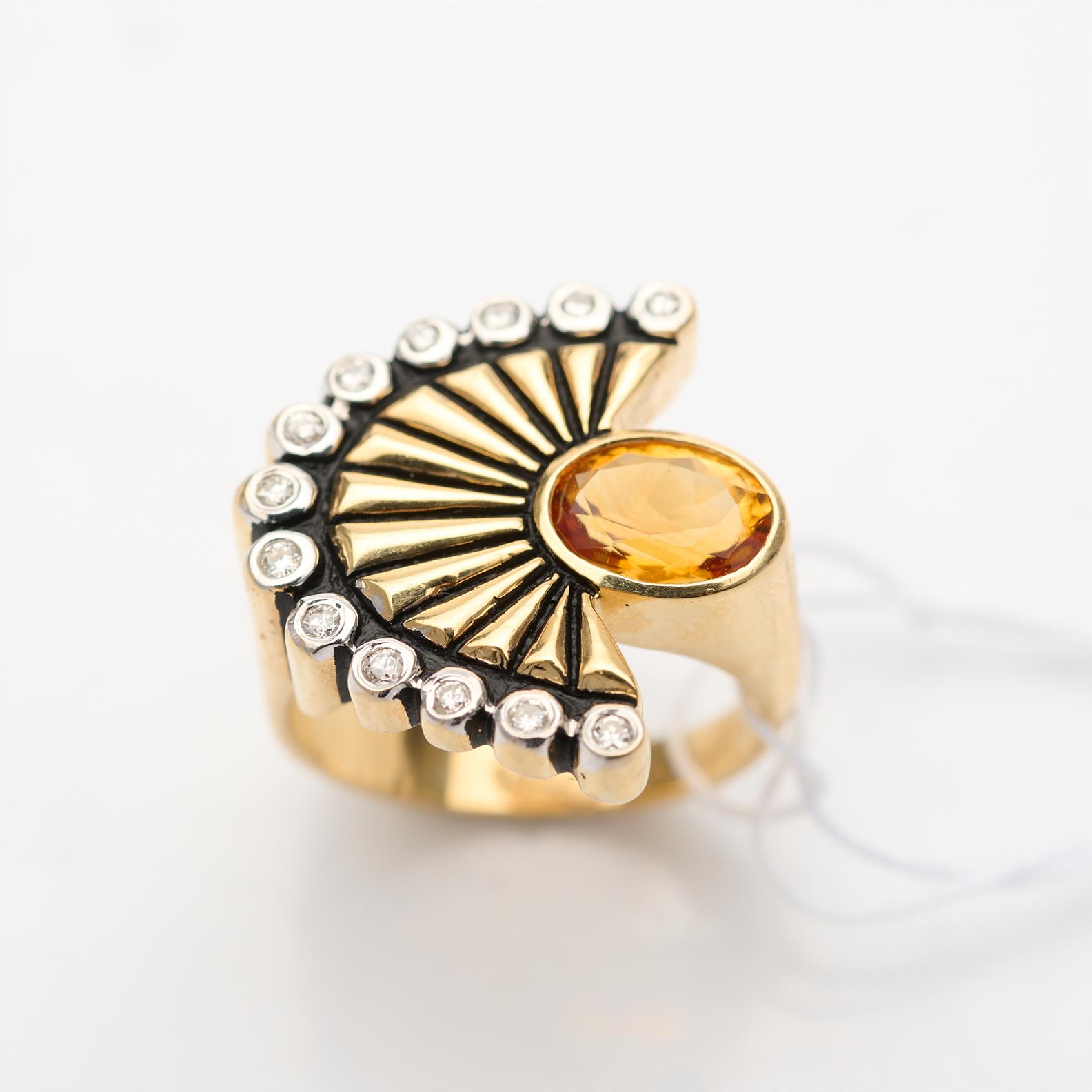 A DIAMOND AND CITRINE RING IN 14CT GOLD BY ERTE, SET WITH AN OVAL CITRINE WEIGHING APPROXIMATELY 1.06 CARATS, AND THIRTEEN COLLET-SET ROUND BRILLIANT-CUT DIAMONDS TOGETHER WEIGHING APPROXIMATELY 0.26 CARATS, STAMPED CFA 41/200, RING SIZE O-P