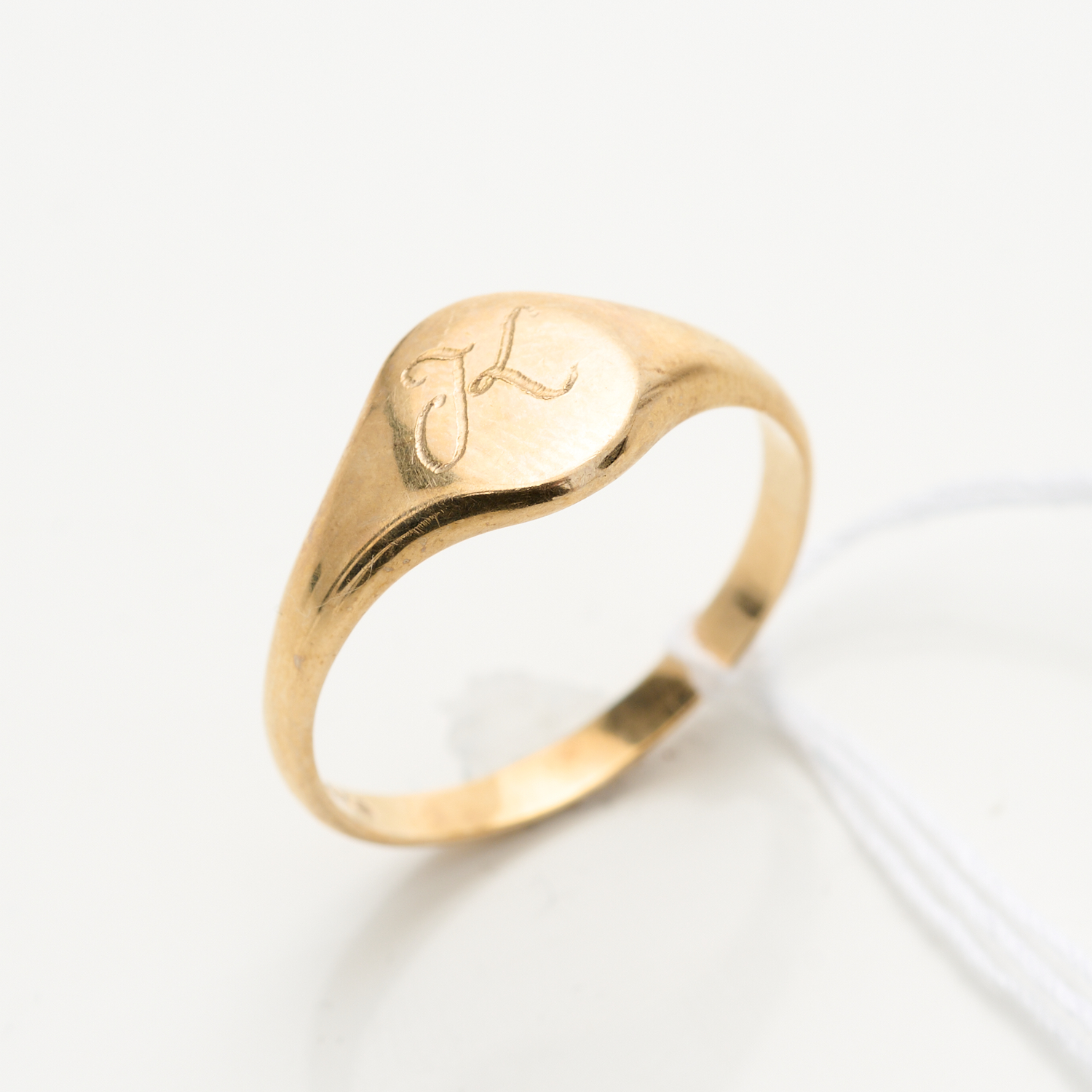 A 'K' SIGNET RING IN 9CT GOLD, RING SIZE O, 2.1GMS