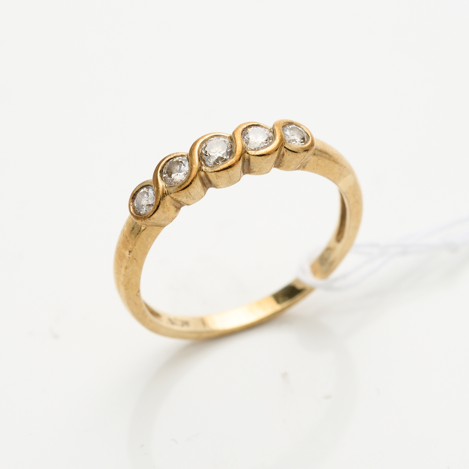 A FIVE STONE DIAMOND RING IN 9CT GOLD, RING SIZE P, 2.03GMS