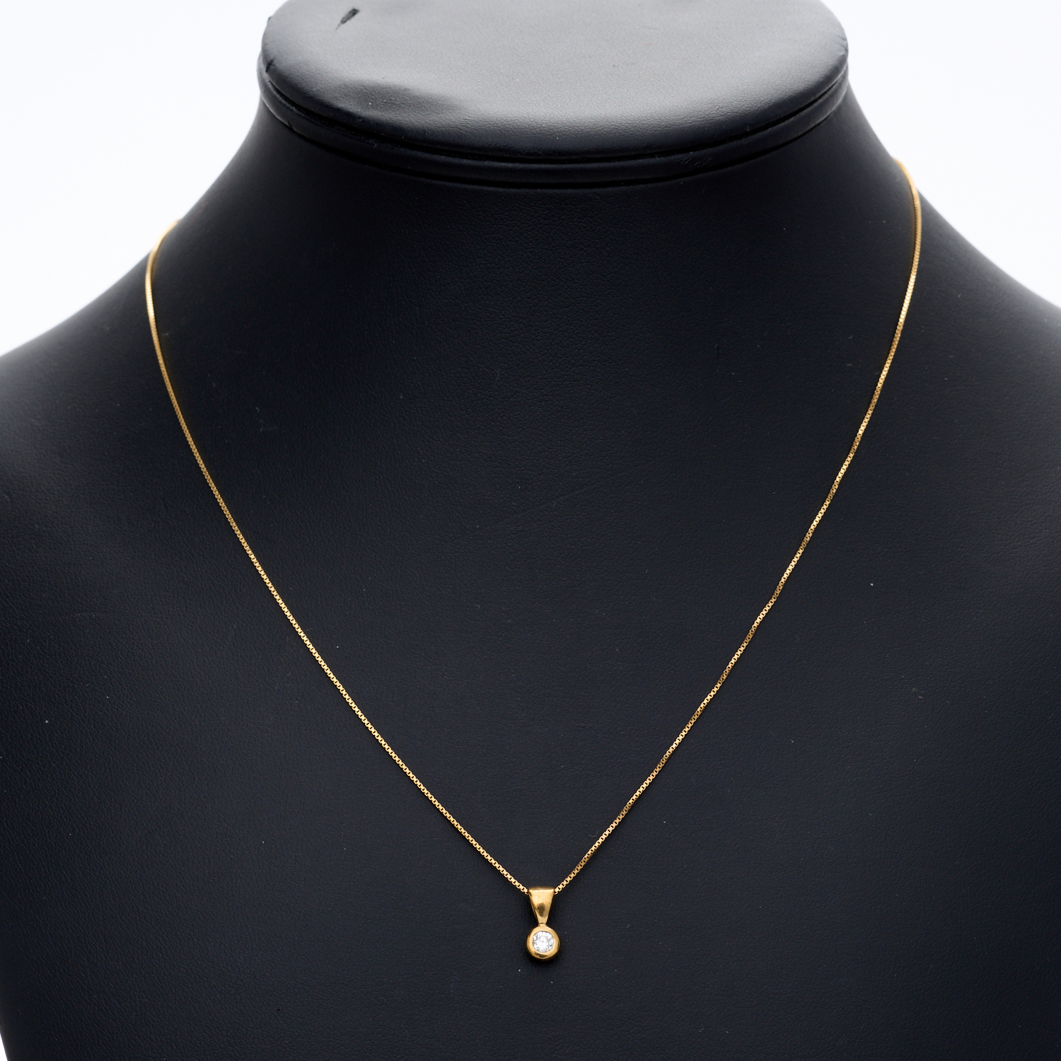 A DIAMOND PENDANT IN 9CT GOLD, 1.8GMS