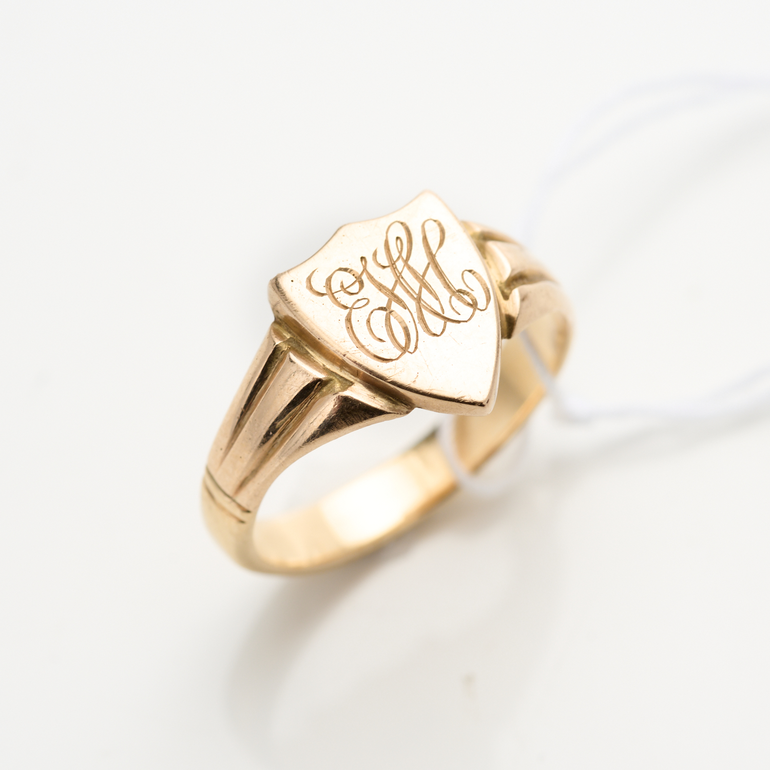 A SIGNET RING IN 14CT GOLD, SIZE M, 3.67GMS