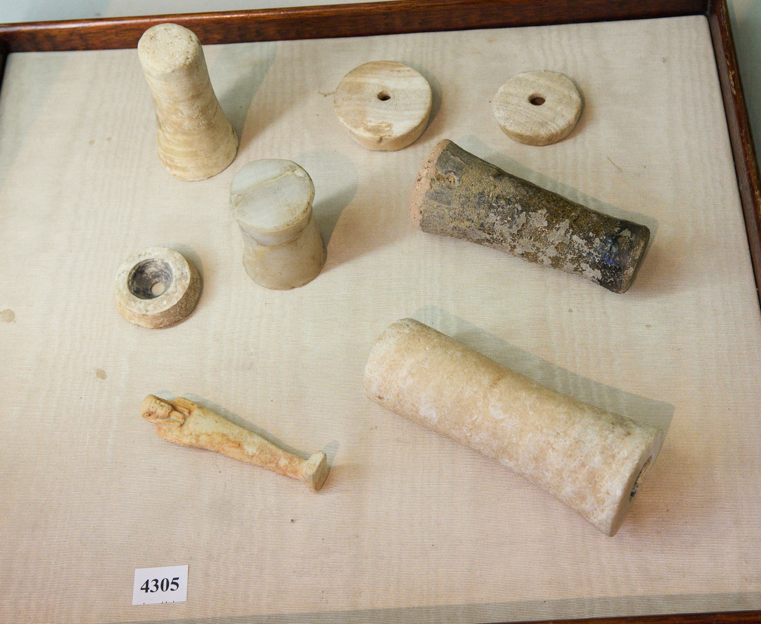 A COLLECTION OF ARCHAEOLOGICAL ITEMS INCLUDING AN EGYPTIAN USHABTI, CYLINDERS ETC, LEONARD JOEL LOCAL DELIVERY SIZE: SMALL